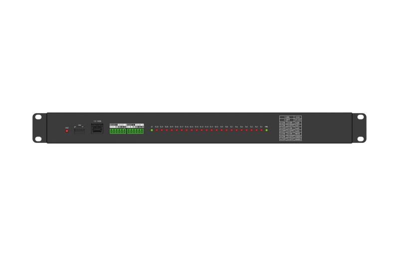 Dimensions: 440 mm × 44 mm × 213.5 mm (17.3″ × 1.73″ × 8.40″) (L × W × H); Package Dimensions: 485 mm × 129 mm × 390 mm (19.1″ × 5.1″ × 15.4″) (L × W × H); Weight: Approx. 2.7 kg (5.95 lb.); With Package Weight: Approx. 3.5 kg (7.72 lb.); Storage Condition: -30 °C to 70 °C (-22 °F to 158 °F). Humidity 95% or less (non-condensing); Operating Condition: -30 °C to 60 °C (-22 °F to 140 °F). Humidity: 5% to 95% (non-condensing); Interface of AC signal: 22 ch; RS485 output interface: 4 RS-485; DC output interface: 5 VDC, 2A; Pin switch: 5 ch; Light of status: 22; Range of detection voltage: 100VAC – 240VAC,50Hz/60Hz; Working voltage: 100VAC – 240VAC,50Hz/60Hz; Consumption: < 5 W; Overvoltage Category: Ⅱ